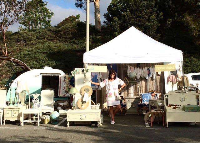 My retail space was just pillows at first. As it grew, I added some painted furniture to hold the pillows, and soon the furniture was selling too! That’s how I transitioned to vintage furniture. By the time Sally was ready to hit the road, I was busily selling vintage hankies, hanky pillows, camper paintings, furniture, and vintage housewares too!
